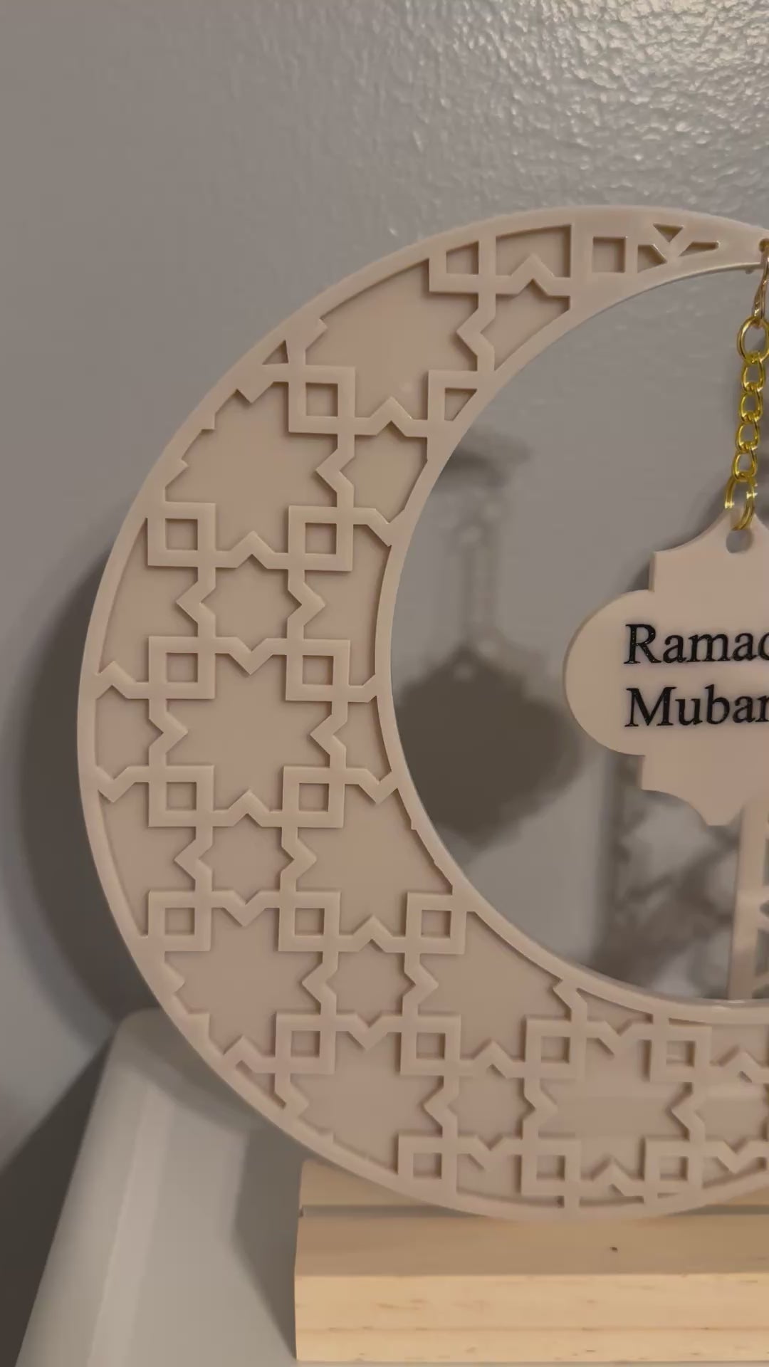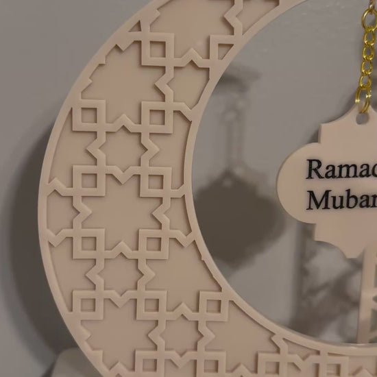 Acrylic Ramadan Crescent Shape With Interchangeable Ramadan and Eid Mubarak Charm
