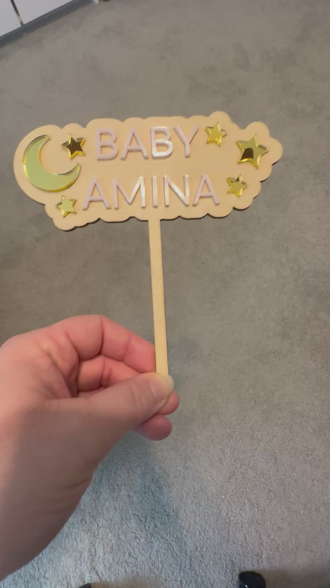 Add the perfect finishing touch to your baby shower cake with our charming boho wood cake topper! Personalized with your baby’s name, this retro-inspired piece brings a sweet, nostalgic vibe to your celebration. Choose the natural wood look for earthy elegance, adding a touch for fun. The name pops in stunning 3D, thanks to its crisp acrylic layering.