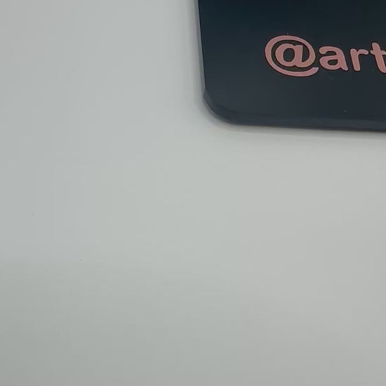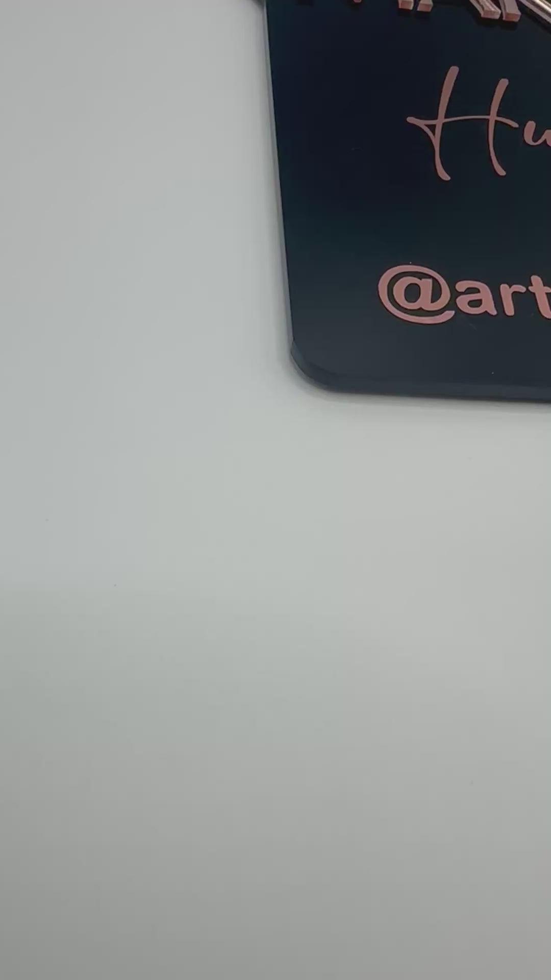 Each mirror features stunning 3D acrylic details. Every piece includes bold “MAKEUP BY” lettering in your choice of mirror gold, mirror silver or mirror rose gold, adding a professional and eye-catching finish. Your social media handle/username will be in premium vinyl.